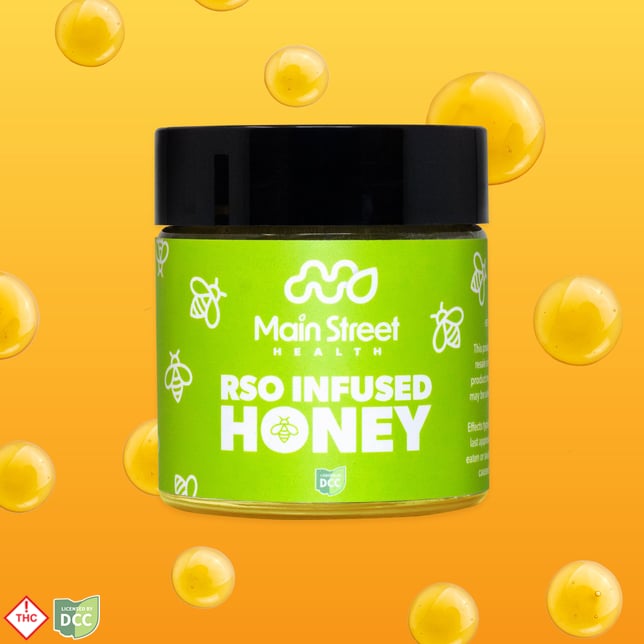 Main Street infused honey is a sweet and flexible way to medicate. First, we start with locally-harvested honey from the bees of small farmers just outside of Yellow Springs, Ohio. Then, Main Street infuses with either our high-quality THC distillate or our ever-popular RSO...plus. Plus? That would be RSO, plus additional CBD, CBG, and CBN for an amplified, full-spectrum experience.