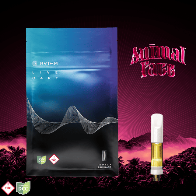 Animal Face [orig: Face Off OG x Animal Mints], a RYTHM Icon Strain, is an indica-leaning strain with sweet mint, citrus, nutty notes, and soft pine-diesel aroma.