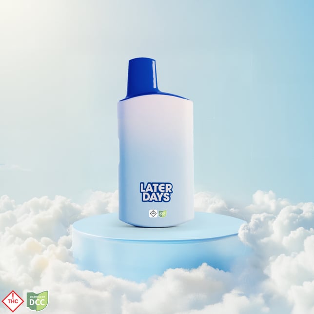 Melt into bold berry bliss with Later Days' Blue Razz Disposable Vape. This indica blend delivers a sweet and tangy punch of blue razz, striking the perfect balance between vibrant and mellow. Juicy, smooth, and just what you need to take it easy.