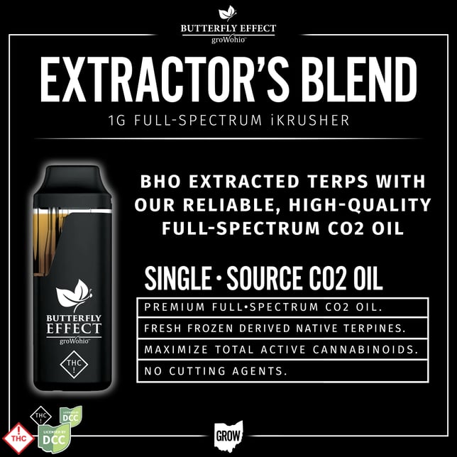 Introducing our Extractor’s Blend iKrusher. Crafted by our extraction team using premium CO2 oil and single-source BHO cannabis-derived terpenes for consistent flavor and repeatable effects.