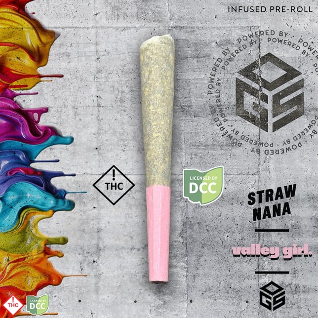 The Valley Girl infused pre-roll is a 1g pre-roll infused with premium distillate and hash rosin. Manufactured by Ohio Green Systems (OGS), using a proprietary Cryo-Ethanol extraction process for exceptionally pure distillate and hash rosin. The Valley Girl infused pre-roll is in a hemp-based paper cone and features a pink crutch.