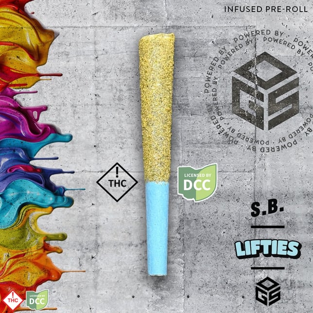 The Lifties infused pre-roll is a 1g pre-roll infused with premium distillate and hash rosin and finished in kief. Manufactured by Ohio Green Systems (OGS), using a proprietary Cryo-Ethanol extraction process for exceptionally pure distillate and hash rosin. The Lifties infused pre-roll is in a hemp-based cone rolled in kief and features a baby blue crutch.